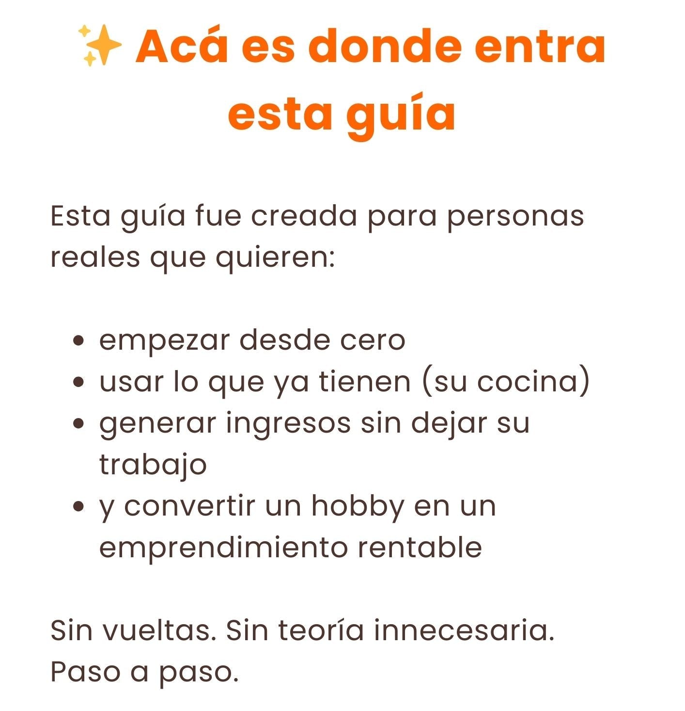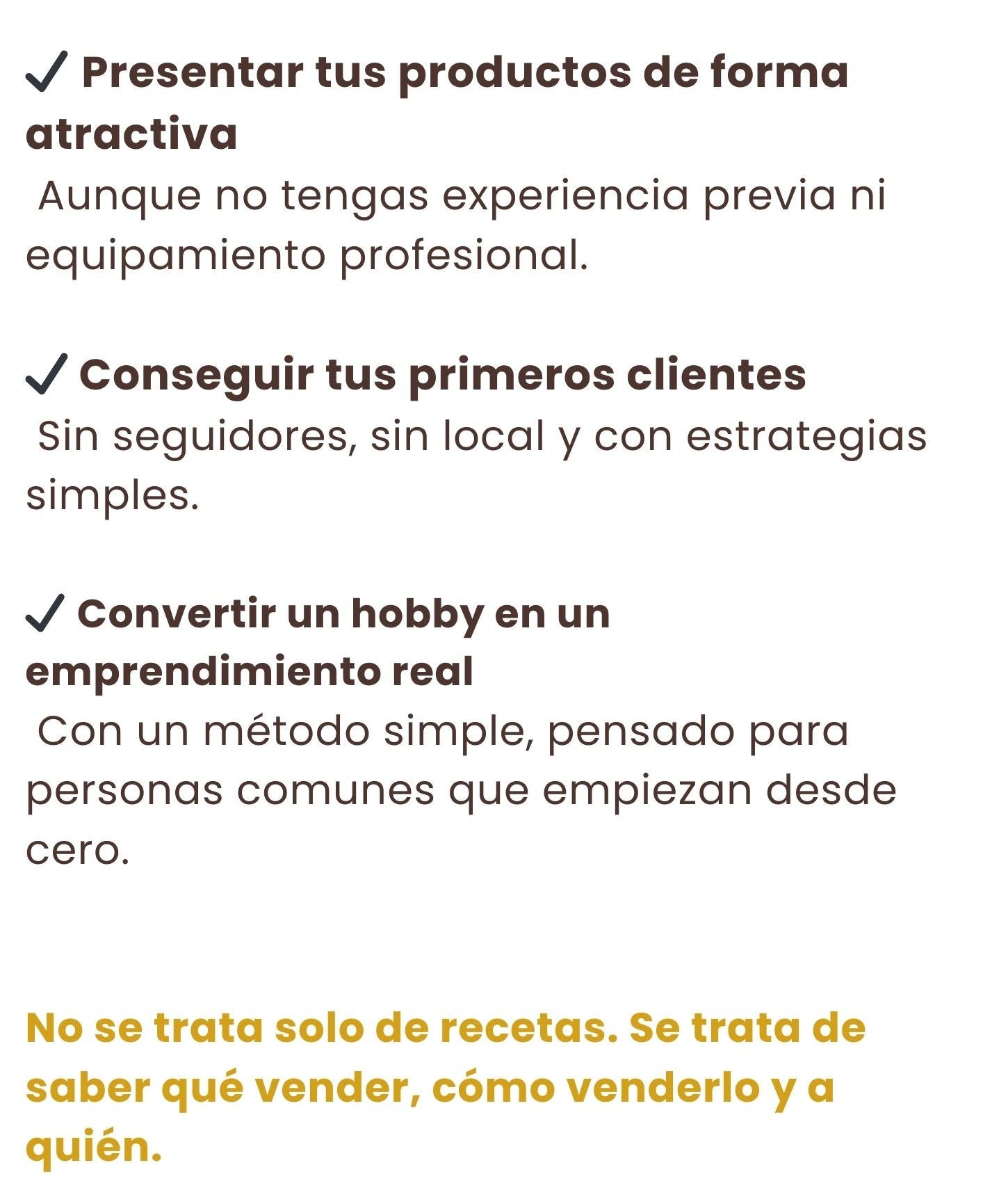 Con una receta bien hecha, buena presentación y un toque personal, podés recuperar tu inversión en la primera semana. Este libro te enseña exactamente cómo hacerlo.
